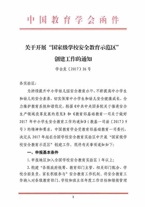 关于开展“学校安全教育示范区”创建工作的通知-凯发平台