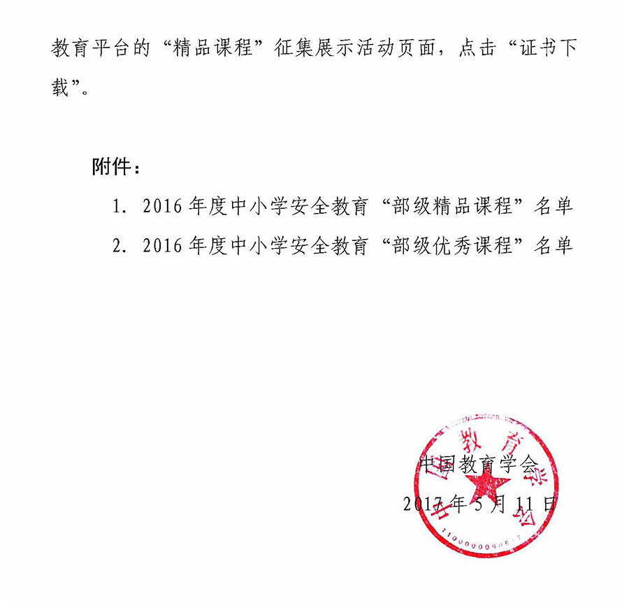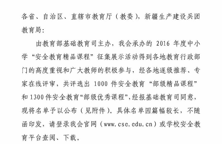 关于公布2016年度全国中小学“安全教育精品课程”征集展示活动评选结果的通知-凯发平台