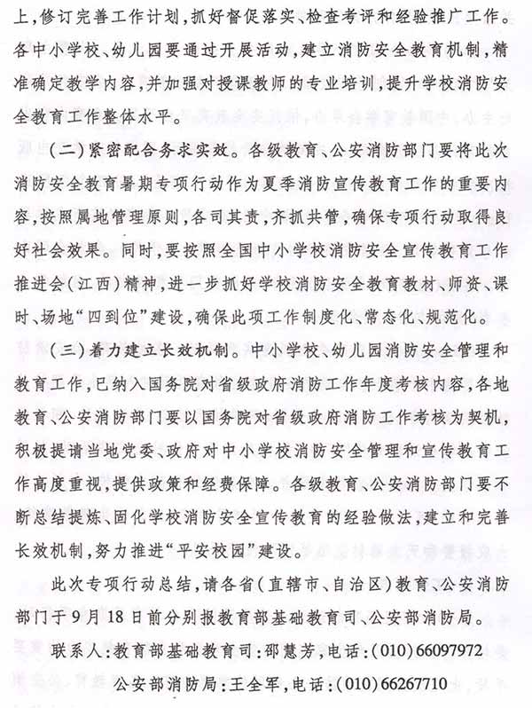教育部基础教育司 公安部消防局关于开展消防安全教育暑期专项行动的通知-凯发平台