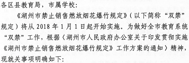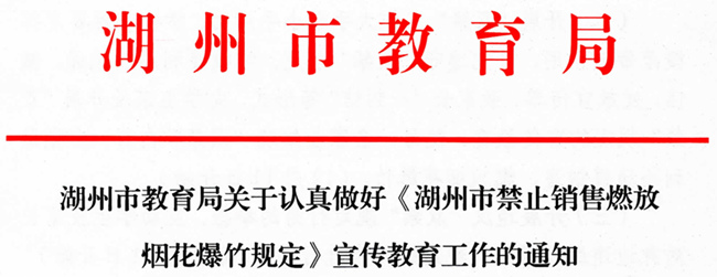 湖州市教育局关于认真做好《湖州市禁止销售燃放烟花爆竹规定》宣传教育工作的通知-凯发平台