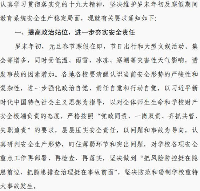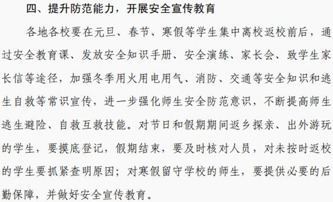 教育部办公厅关于切实做好岁末年初及寒假期间学校安全生产工作的通知-凯发平台
