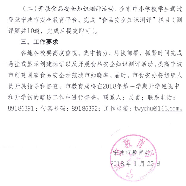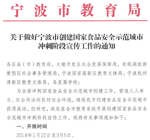 关于做好宁波市创建国家食品安全示范城市冲刺阶段宣传工作的通知-凯发平台