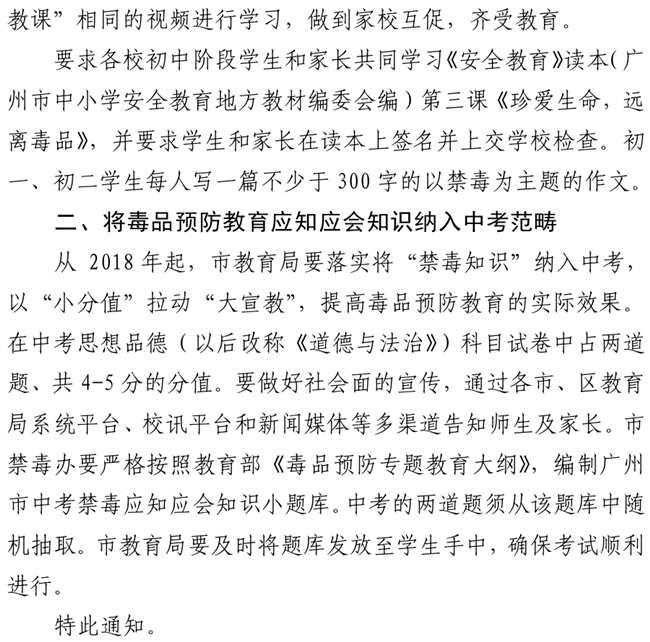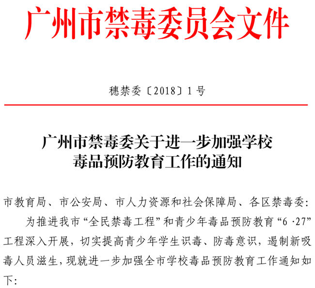 广州市禁毒委关于进一步加强毒品预防教育工作的通知