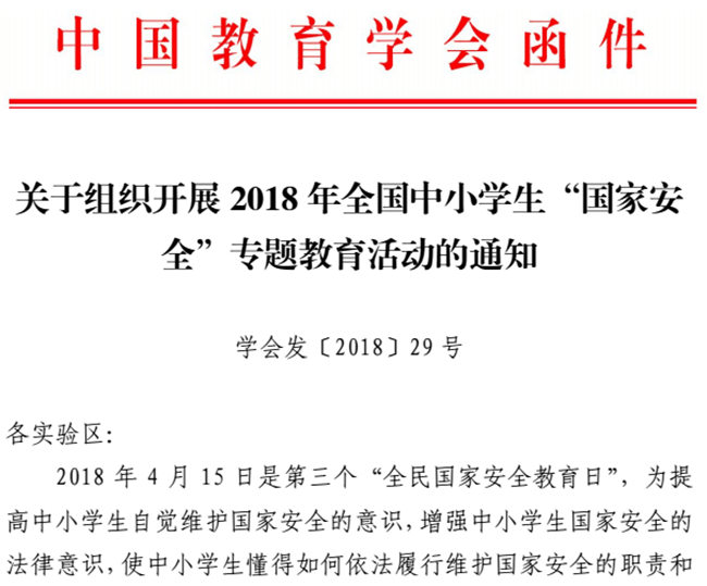 关于组织开展2018年全国中小学生“国家安全”专题教育活动的通知