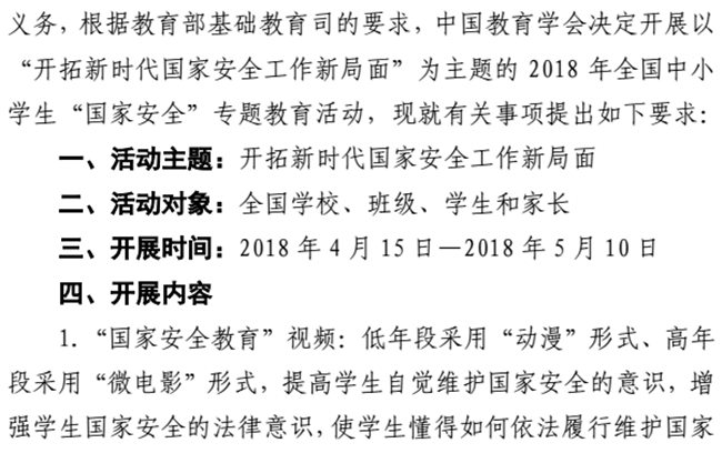 关于组织开展2018年全国中小学生“国家安全”专题教育活动的通知-凯发平台