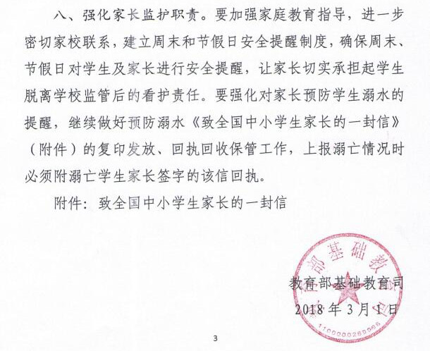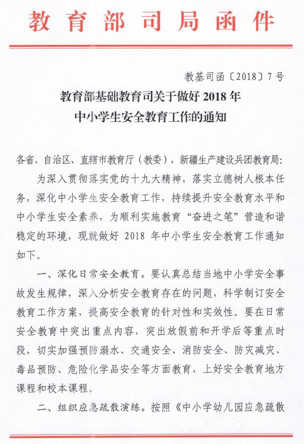 教育部基础教育司关于做好2018年中小学生安全教育工作的通知
