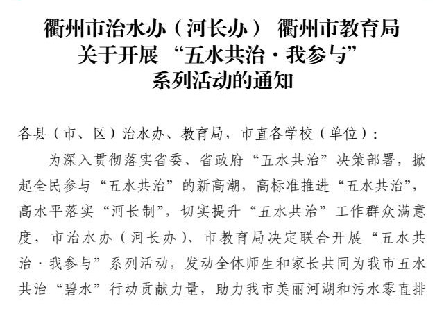 衢州市关于开展“五水共治·我参与”系列活动的通知-凯发平台