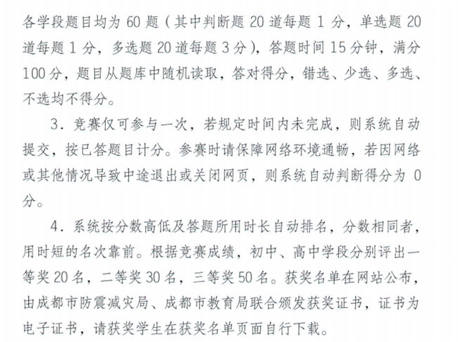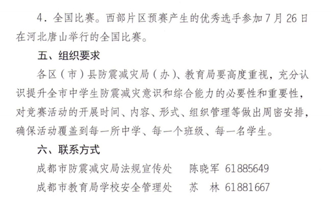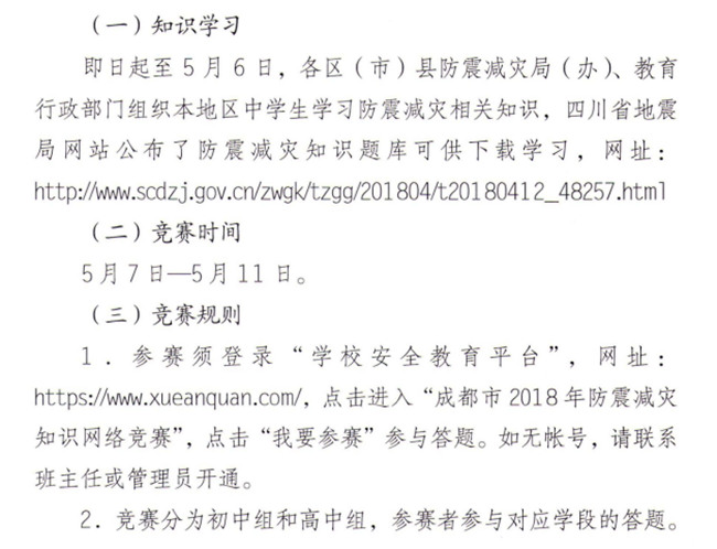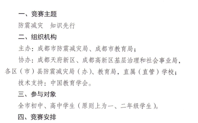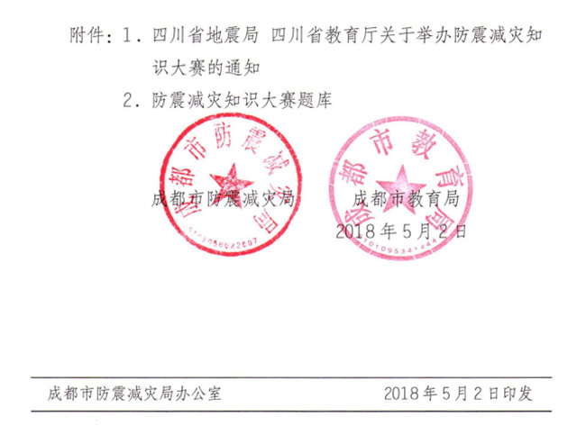 成都市防震减灾局 成都市教育局关于组织开展防震减灾知识网络竞赛的通知-凯发平台
