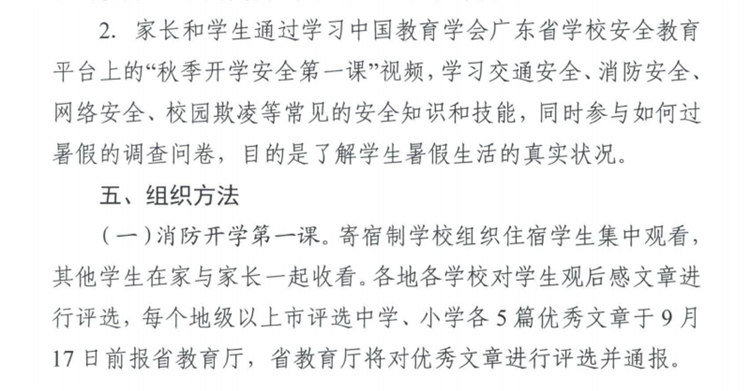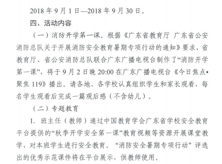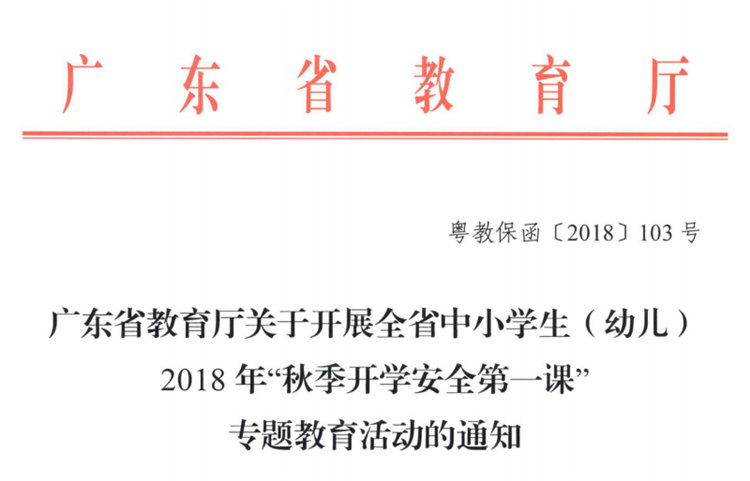 广东省教育厅关于开展全省中小学生(幼儿)2018年“秋季开学安全第一课”专题教育活动的通知