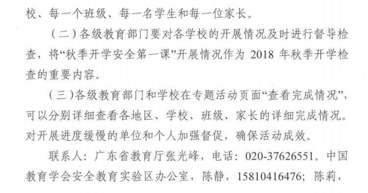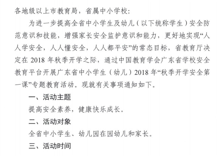 广东省教育厅关于开展全省中小学生(幼儿)2018年“秋季开学安全第一课”专题教育活动的通知-凯发平台