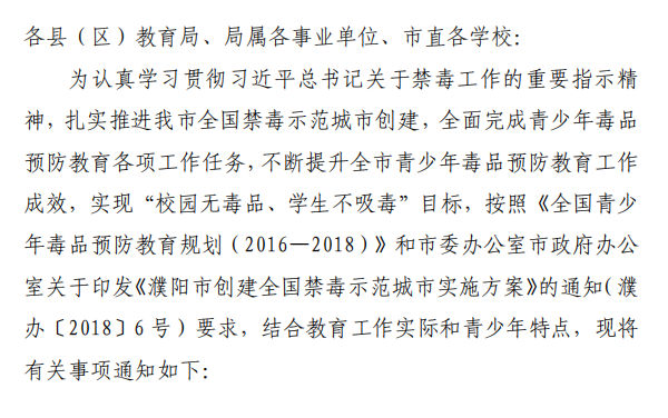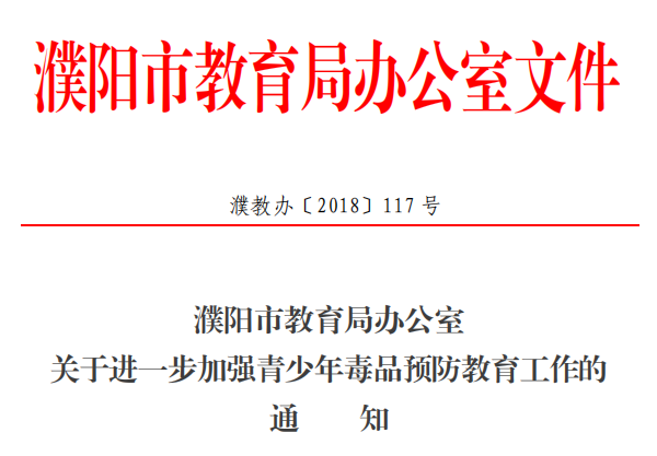 濮阳市教育局办公室关于进一步加强青少年毒品预防教育工作的通知