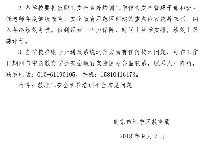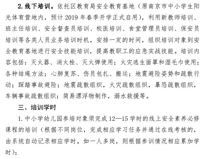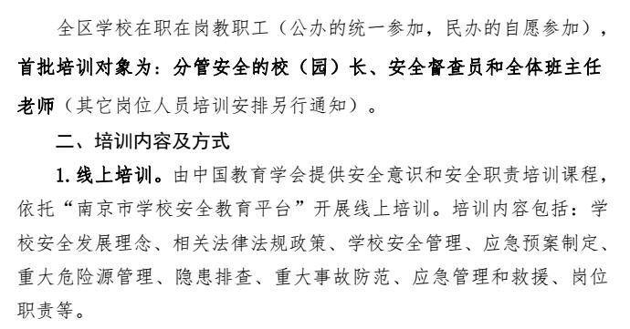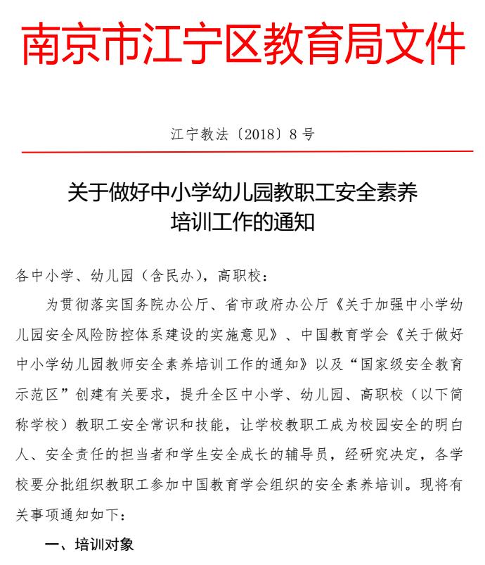 南京市江宁区关于做好中小学幼儿园教职工安全素养培训工作的通知