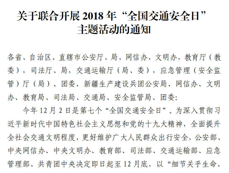 关于联合开展2018年“全国交通安全日”主题活动的通知