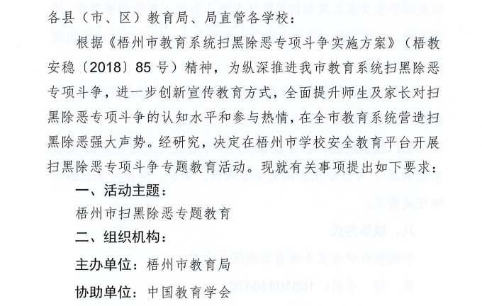 梧州市教育局关于组织开展扫黑除恶专题教育活动的通知
