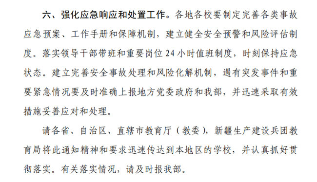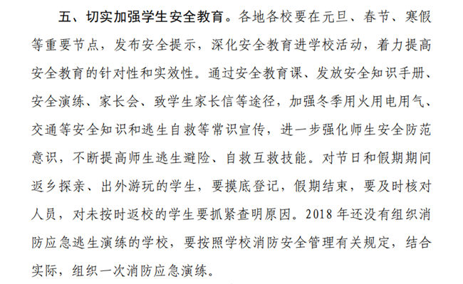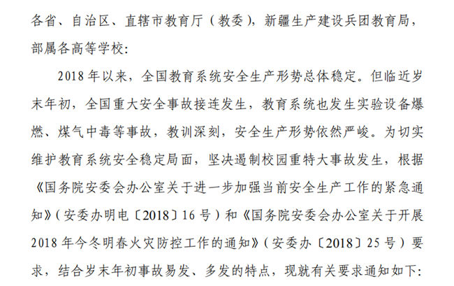 教育部办公厅《关于切实做好岁末年初学校安全生产工作的通知》