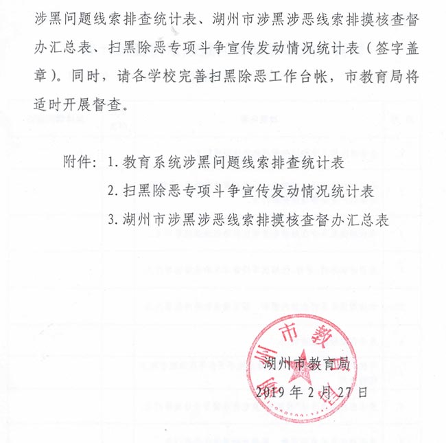 湖州市教育局关于进一步做好扫黑除恶工作的通知-凯发平台