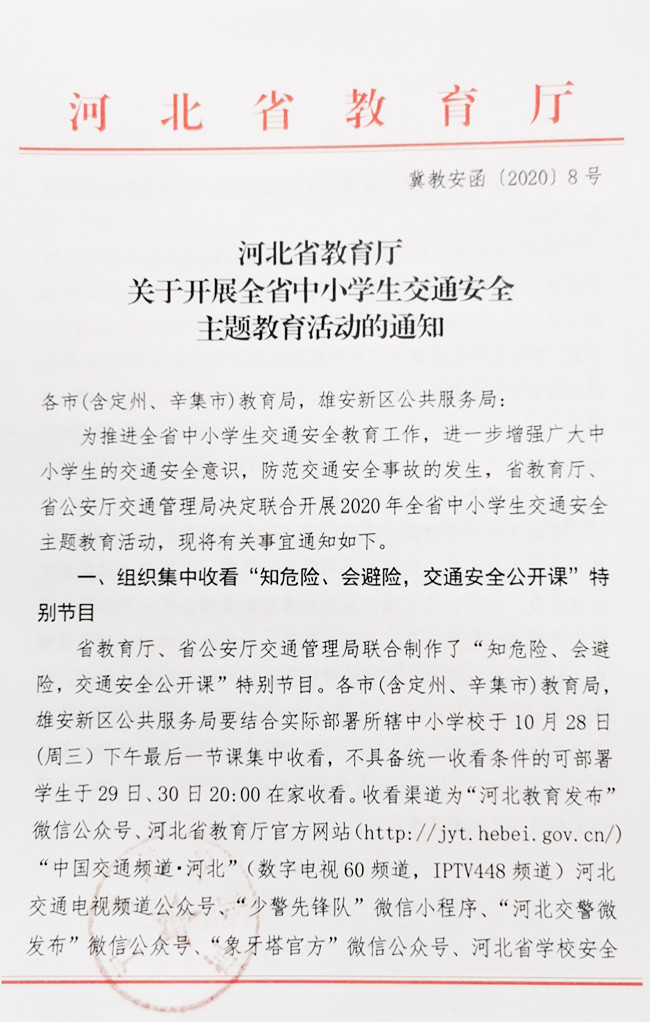 河北省教育厅关于开展全省中小学生交通安全主题教育活动的通知-凯发平台