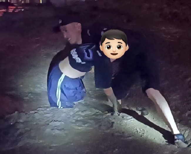 到达现场后,只见一男童踩在河滩淤泥中,淤泥已淹没其臀部,男童满身黑泥,动弹不得,不知所措,情况十分危急。如果不果断采取措施,后果不堪设想。“不要动,叔叔来救你。”特巡警队员一声大吼后,迅速跳进泥潭里。紧急关头,特巡警队员一边安抚男童情绪,提醒其不要乱动,以防止身体继续下沉,一边不顾自身危险,慢慢靠近男童,随后伸手将男童的脚从淤泥扯了出来。岸边的另一位队员早就做好准备,用长棍将其拉上了岸。