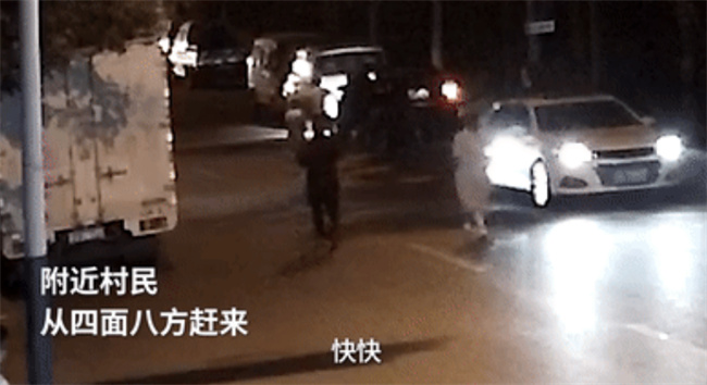 听到呼喊后,越来越多的人从四面八方冲到事故现场,纷纷加入抬车救援中。