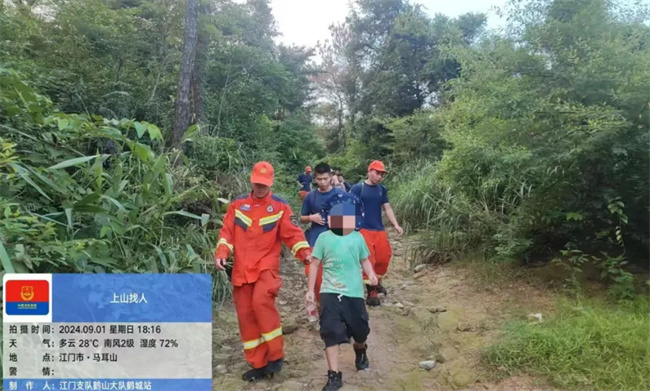 9月1日13时56分,江门市消防救援支队接到报警,位于江门鹤山市270省道西100米处的昆仑山上,有人在山上迷路。接警后,江门消防立即调派鹤城消防救援站2车11人前往现场处置,同时联合当地护林员组成搜救小组。