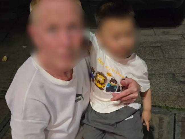 男孩看起来三岁左右,附近并没有家长,由于双方语言不通,外国人也不清楚如何求助,但又十分担心小男孩的安全,他决定留在原地陪伴小男孩,寻求路人的帮助。