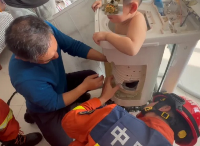 “消防员叔叔快来救我!”11月30日,滨州市博兴县一3岁男童在洗衣机甩干筒内玩耍时不慎被卡,家属急得团团转。滨州消防接警后,火速赶赴现场。
