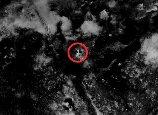 19时40分,画面清晰显示松林里蜷缩的人影,“找到了!距离约560米!”