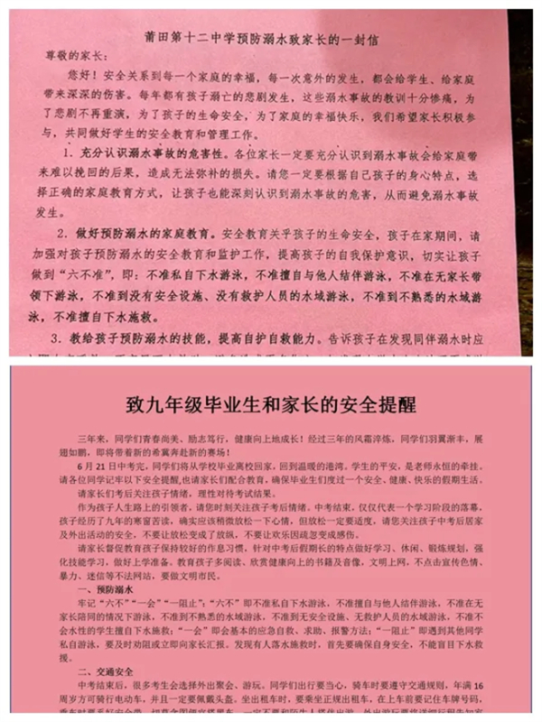 强化家校协同,从严从实压紧“责任链”。区教育局组织全区各校通过“期末家长会”“线上线下家访”“印签《期末与暑假安全告家长书》”等活动,进一步强化家校联动协作,提高家长的防溺水安全意识,督促家长加强对孩子的关心关爱,全面落实监管责任,预防意识再强化,预防关口再前移,确保学生外出家长“四个知道”(知去向、知同伴、知内容、知归时),着力构建部门、学校、家庭、社会多方参与的防溺水工作体系。同时,各学校紧密联系属地人民政府,共同密切关注重点群体,加强教育引导,形成家校协同、部门联动、社会参与的防溺水工作格局,有效预防和减少学生溺水事故的发生。