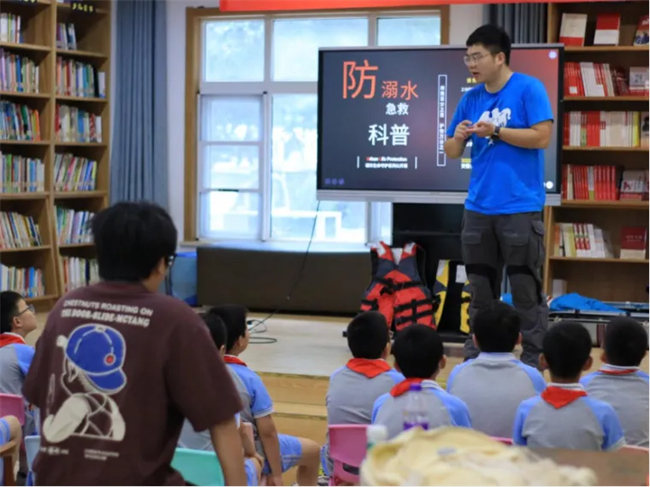 随着气温逐渐升高,水上活动成为孩子们喜爱的消暑方式之一。然而,每年因溺水事故导致的悲剧频发,每个人都应该警惕。为进一步提升学生防溺水意识和急救技能,筑牢安全防线,有效推动应急救护知识在校园内外普及的力度,8月16日上午,合肥市蚌埠路第五小学四(2)中队开展了防溺水生命安全急救课堂。