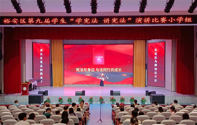 竞赛现场,各位参赛选手通过试卷做题、闭卷考试的方式,经过一个小时的认真答题,共遴选出小学、初中、高中各1名学生代表裕安区参加市学生宪法法律素养竞赛;经过评委打分,共遴选出小学、初中、高中各1名学生代表裕安区参加市学生“学宪法 讲宪法”演讲竞赛。