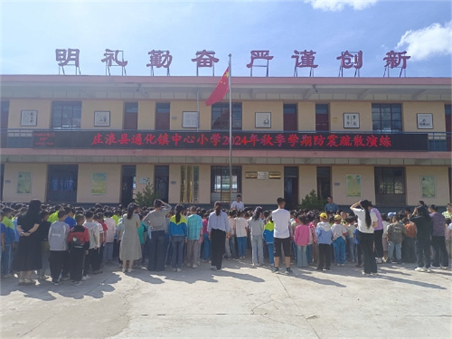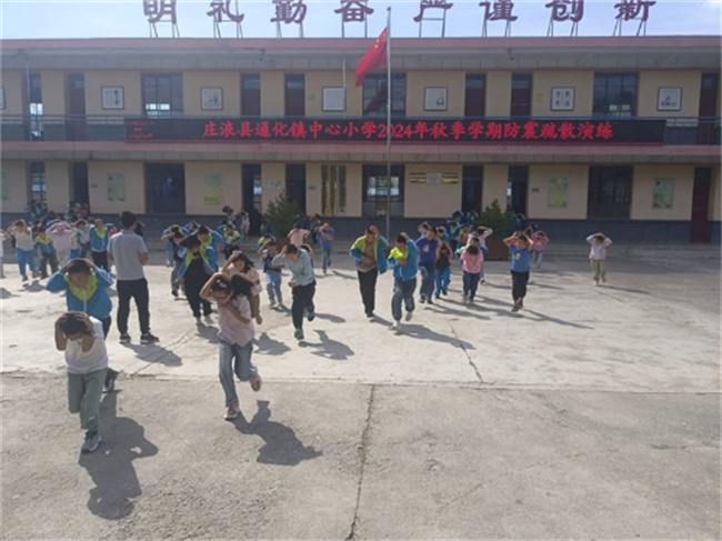 为提高全校师生的防震减灾意识,增强应急避险和自救互救能力,平凉市庄浪县通化镇中心小学于8月27日下午成功举行了一场紧张有序、贴近实战的防震疏散演练活动。本次活动旨在通过模拟地震发生时的真实场景,让师生们掌握正确的应急逃生技能,确保在真正灾难来临时能够迅速、有序、安全地撤离。