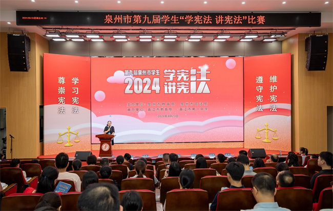 为深入学习贯彻党的二十大精神,持续推进青少年宪法法治宣传教育,根据教育部、省教育厅的有关工作部署要求,8月23日,由泉州市教育局、泉州市司法局联合主办,晋江市教育局承办的泉州市第九届学生“学宪法 讲宪法”比赛在晋江一中池店校区成功举办。泉州市委教育工委委员、市教育局副局长林长华、泉州市司法局四级调研员王佳艳等领导莅临现场指导并出席颁奖仪式。