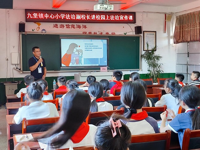为进一步增强学生的法治观念和安全意识,近日,赣州瑞金市九堡镇中心小学邀请法治副校长刘威走进校园,为学生们带来了一堂生动的法治教育课。