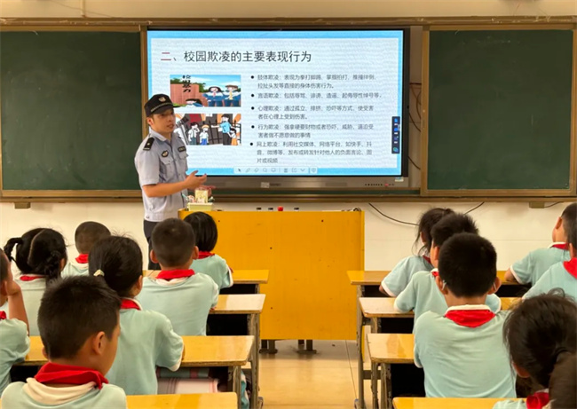 9月3日,将乐县杨时小学邀请城关派出所警官陈其辉到校开展了“开学第一课”法治宣传教育活动。活动中,陈其辉以实际案例讲解、互动问答等形式,围绕预防未成年人违法犯罪、防范校园欺凌、交通安全、预防电信网络诈骗、防性侵教育等方面内容开展生动具体的普法教育,引导广大学生遵纪守法,明确法律底线和行为,努力提高法治意识和自我防护意识,全力确保青少年身心健康发展。全校2400余名师生通过班班通收听观看。