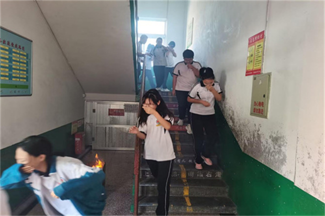 随着警报声响,演练正式开始。全体老师听到警报声,立即到达指定岗位,指导学生快速疏散,各班任课教师带领学生弯腰、捂住口鼻,沿着学校指定楼梯口快速前进,有序撤离到学校操场的安全地带,随即各任课教师清点人数,并及时汇报。